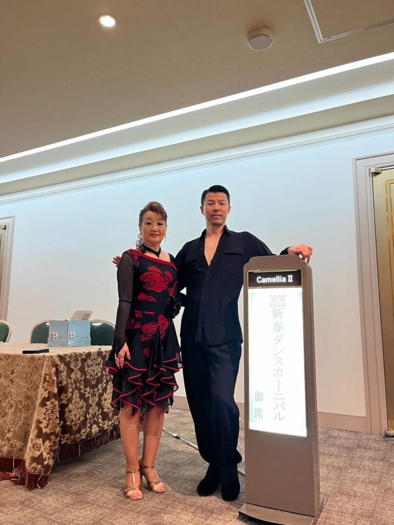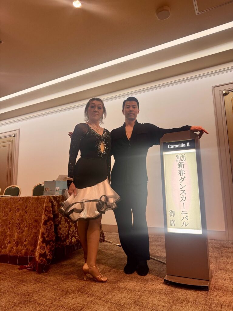 まだ社交ダンスをはじめられたばかりなのに、大きな会場で堂々と踊ることができるなんて素晴らしい精神力です。これからも楽しみですね。